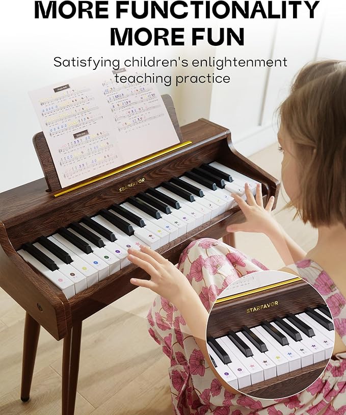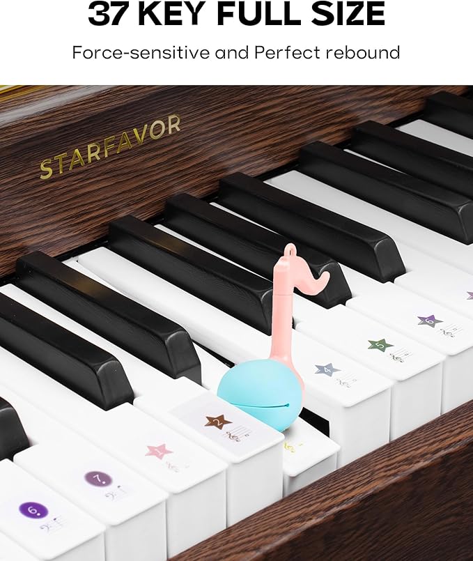 Starfavor Kids Keyboard, 37 Keys Digital Piano with Volume Control, Rechargeable Music Educational Instrument Toy, Wood Piano for 3+ Girls, Boys, Beginner, Toddler