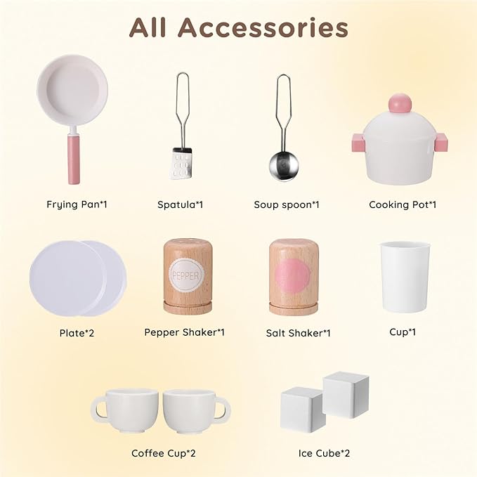 - Perfect Gift: Ideal for birthdays, holidays, or any special occasion, this wooden play kitchen set makes a wonderful gift for boys and girls who love to cook and play pretend.