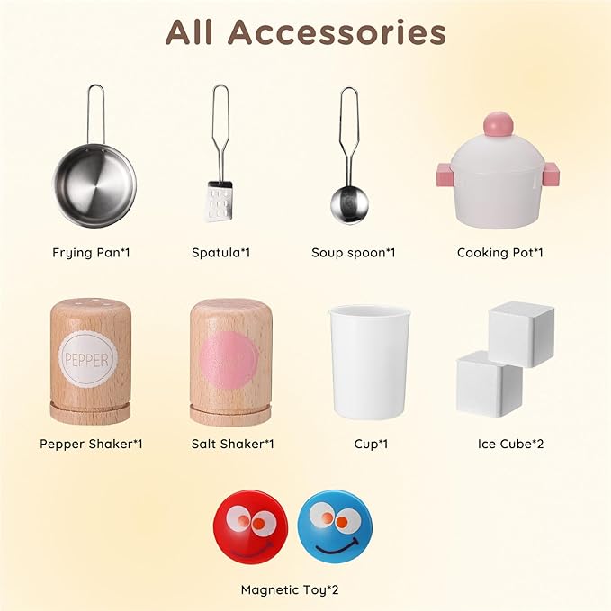 - Perfect Gift: Ideal for birthdays, holidays, or any special occasion, this wooden play kitchen set makes a wonderful gift for boys and girls who love to cook and play pretend