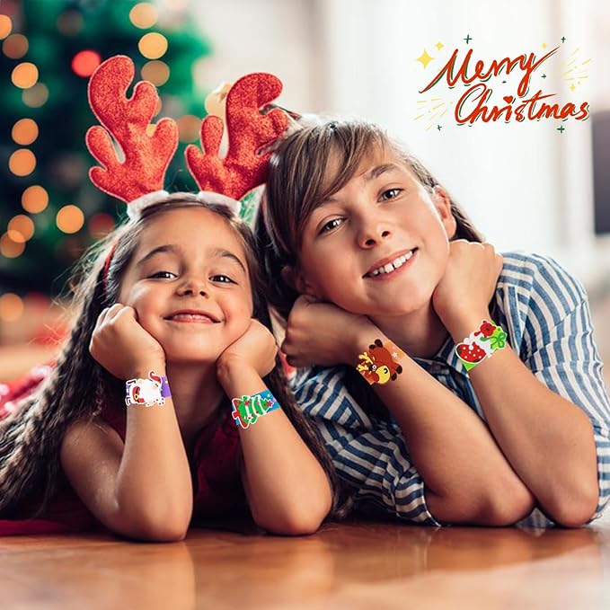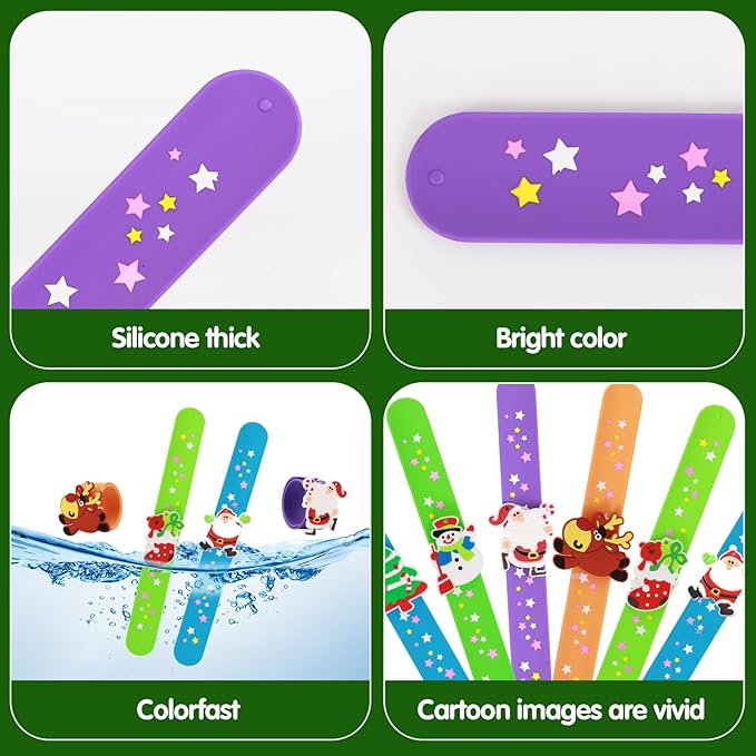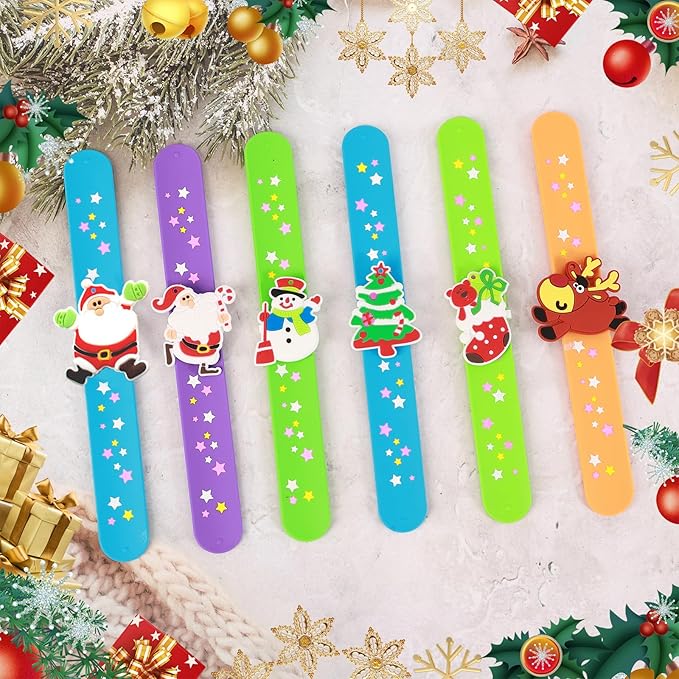 Welkin 6PCS Christmas Slap Bracelets For Kids,Colorful Silicone Bracelet, Soft and Safe Slap Bracelets Party Decorations Favors,Kids Christmas Party Gift