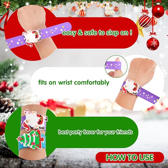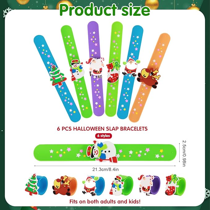 - 【Christmas Decorative Slap Bracelet】Each pack has 6 different design patterns, which can be combined freely, which is very suitable for Christmas party dress up.