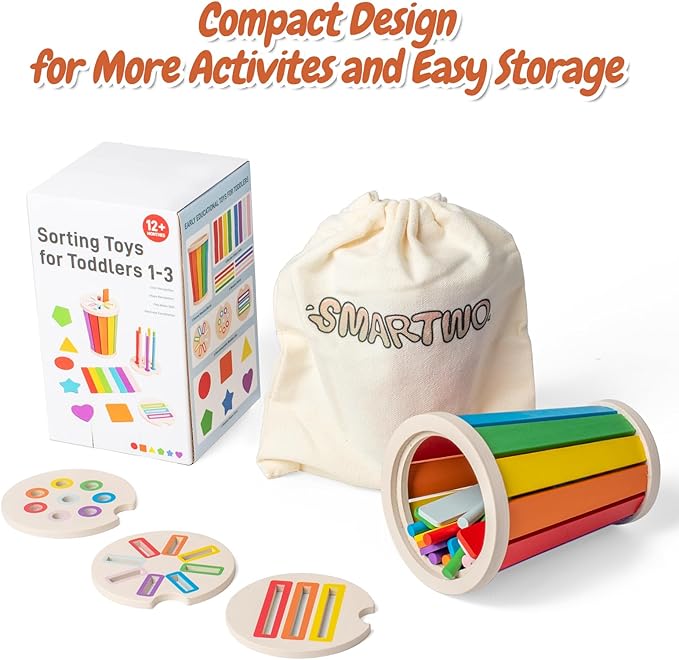 - Sturdy and Safe Toys for Children: This Montessori sensory sorting activity toy is made of natural wood, durable for long lasting play; water-based paint, non-toxic, safe for babies; smooth edges and no sharp corner. The smallest wooden piece is 55mm, no choking hazard