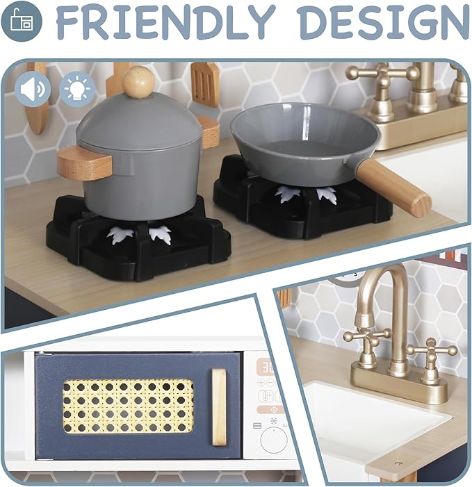 - šGeat gift- Not only provides fun playtime for young children, but is also important for education. The perfect play kitchen for 3-8 year olds is ideal for creative role play toy and the perfect gift for kids.