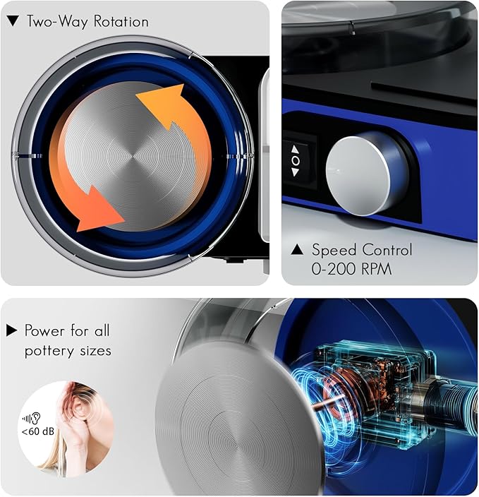 - Customizable Speed Function: Personalize your clay molding experience. Our pottery wheel provides an adjustable speed feature, adept at accommodating various artistic styles, techniques, and proficiency levels.
