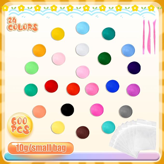 - Abundant and Colorful Set: this pack includes 600 bags of soft clay in 24 diverse colors, 25 bags of each color; Each bag weighs approximately 0.35 ounces (10g); They are abundant to share, allowing kids to collaborate on projects and learn while having fun