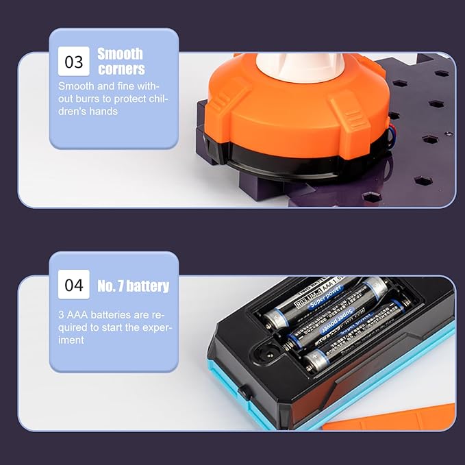 - DESIGN INSPIRATION: Our design inspiration comes from classic circuit experiments in physics, transforming complex theories into simple and interesting assembly processes, allowing children to easily master scientific knowledge