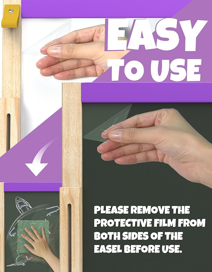 • ADJUSTABLE HEIGHT Art Easel: This adjustable height design allows the kids art easel for kids to grow with your children, easily adapting to their needs. Simply turn the knobs to set easel for kids to the perfect height, making painting easel for kids super convenient for toddlers and kids easel. It's a lasting investment in their artistic journey and can even be used outdoor easel for kids!