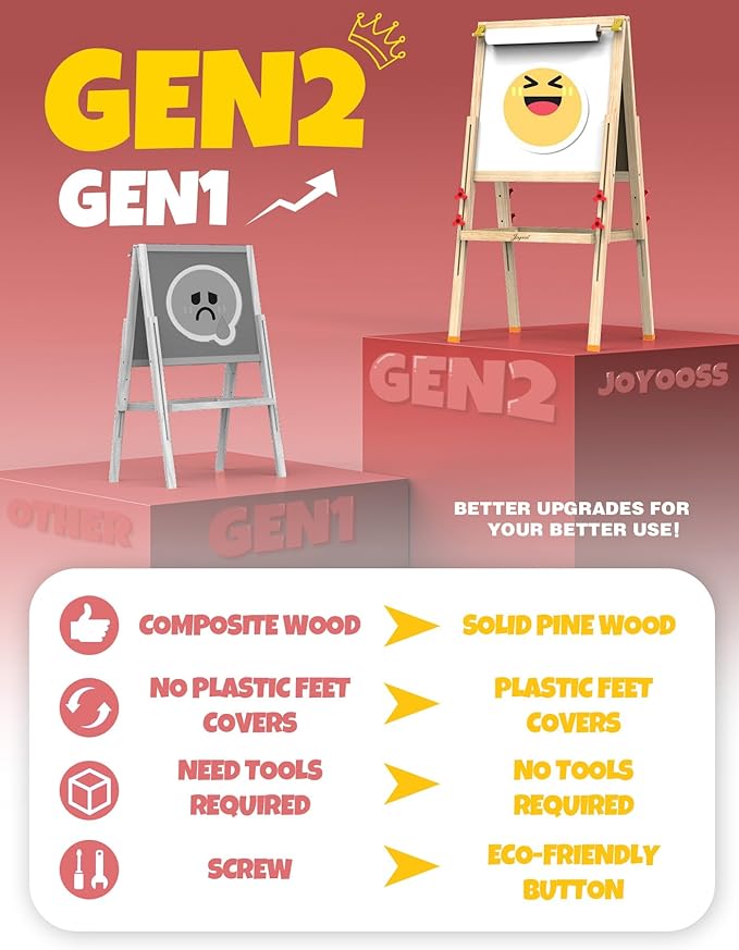• A GREAT GIFT FOR KIDS FOR ANY OCCASION: This easel for kids art easel is designed to develop children's intelligence and imagination. It draws inspiration from feedback on the kids easels for toddlers use and represents the culmination of years of experience in creating art easel. The easel for kids meets everyday drawing needs while providing space for creativity. JOYOOSS is dedicated to bringing excellent products to consumers, hoping every child can experience joy while using kids easel!