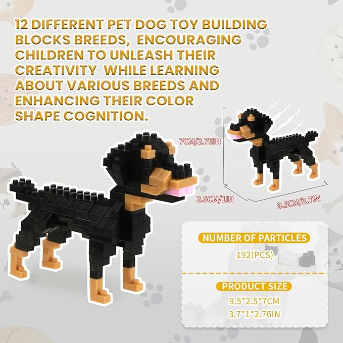 BOROLA Pet Dog Building Blocks Set Educational Toy Realistic Fun Animal Assembly Kit Toys Games(Rottweiler Blocks)