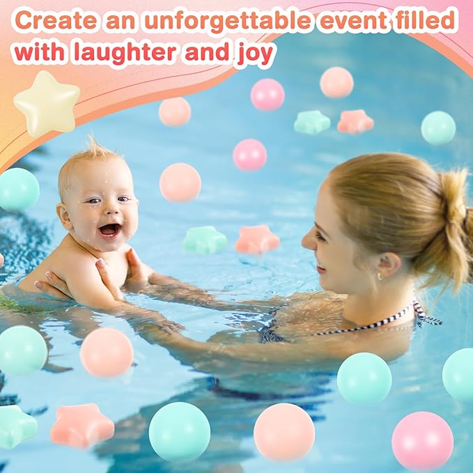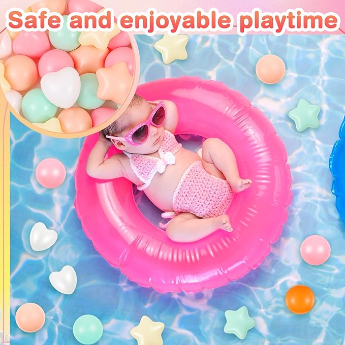 - Funny Party Accessories: embellish your child's birthday party or other special occasions with these star, round and heart shaped ball pool balls; They're suitable for filling up pits, tents, playhouses, kiddie pools, playpens, and bouncy houses; Create an unforgettable event filled with laughter and joy