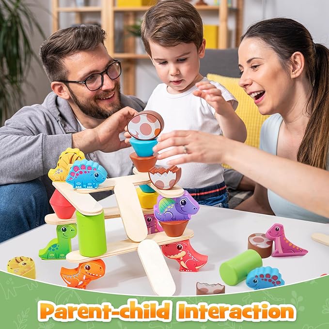 - Parent-child Interaction: This dinosaur stacking toy offers the perfect chance for parent-child interaction, guiding you and your little one on a fun and educational journey. Whether you're working together to solve a tricky balance challenge or simply playing with the colorful pieces, this toy transforms everyday moments into valuable learning experiences that deepen your connection.