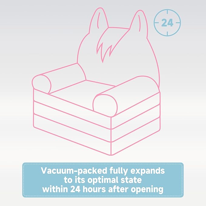 - Vacuum Packing: Our toddler sofa bed is vacuum packed. After removal from packaging, the mini couch for kids may take up to 24 hours to return to its full size and shape