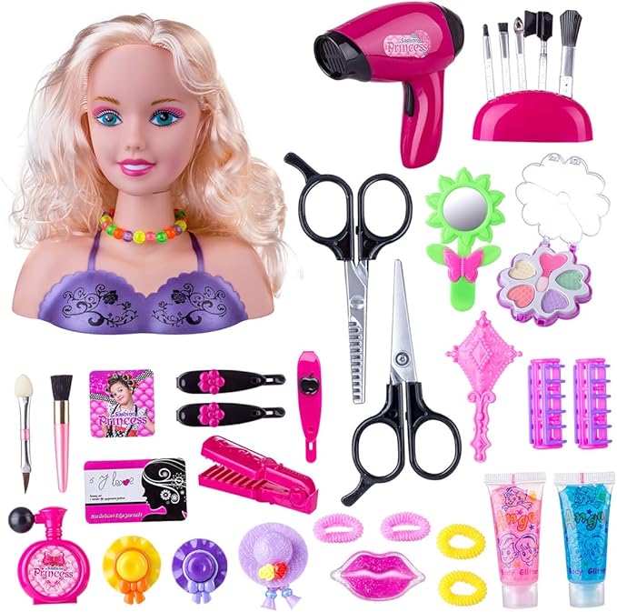 - 【Ideal Gift for Girls' Occasions】Let your little stylist learn hairdressing and pretend makeup while playing with our doll head. The set is suitable for ages 3 and up, making it the perfect gift for any little girl who loves to play dress-up. Perfect for gifting and cherished additions to any child's hours of entertainment on birthdays, Christmas, Thanksgiving, and more.