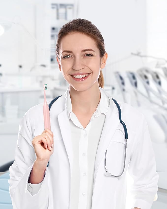 Rtauys S5 Sweeping Electric Toothbrush - Rechargeable Electric Toothbrushes with 8 Heads, Power Electric Toothbrush with Holder, 2.5 Hours Charge for 45 Days Battery Life - Pink