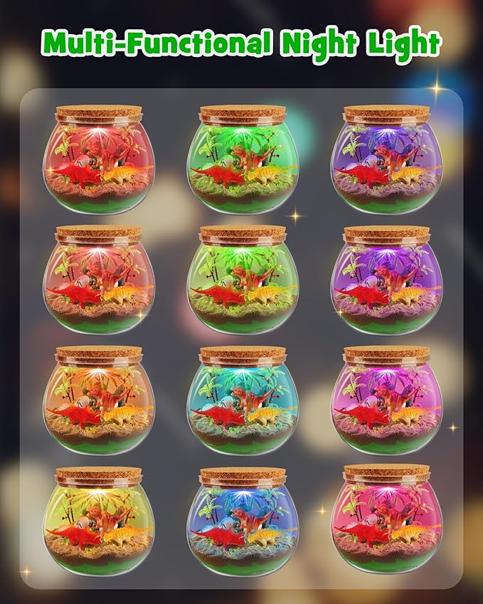 D-FantiX Dinosaur Toys Terrarium Kit for Kids, LED Dino Night Light, DIY Arts and Crafts Science Projects Kit, Birthday for Boys Age 3 4 5 6 7 8-12 Year Old