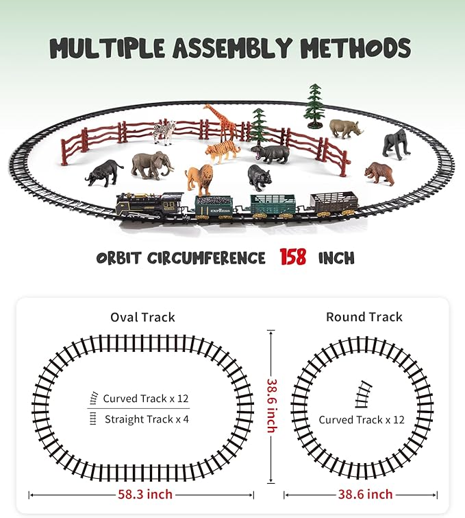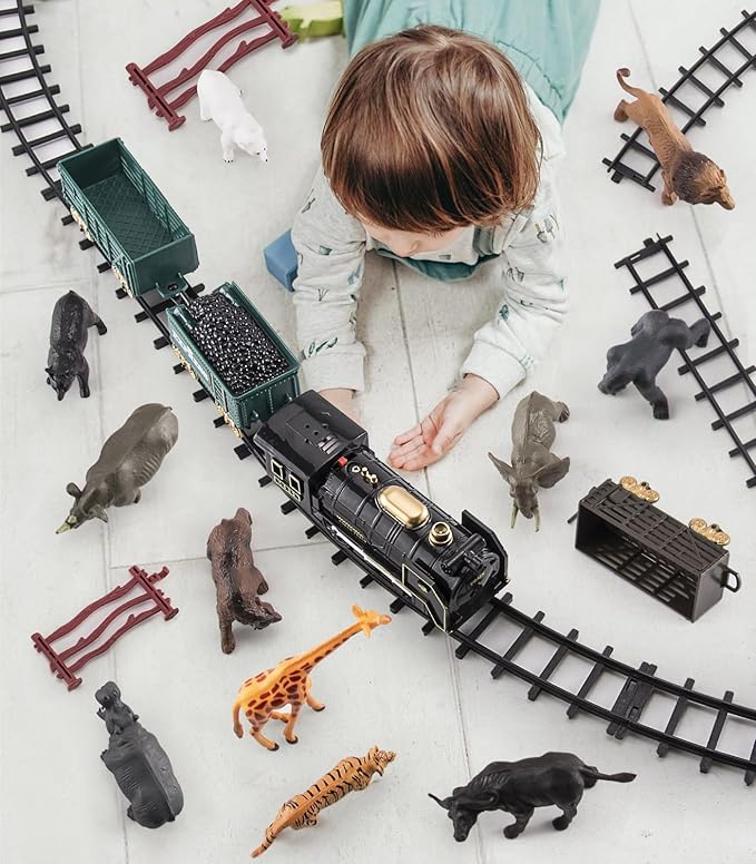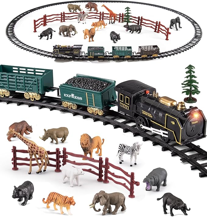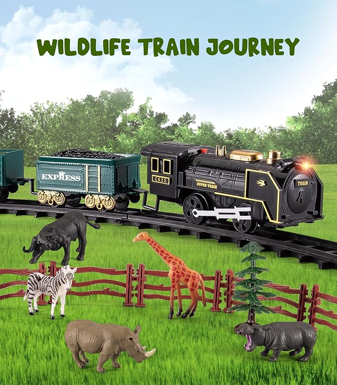 - PERFECT GIFT FOR TODDLERS & KIDS - Ignite your child's imagination with this safari-themed electric train set! Ideal for birthdays, holidays, or as a stocking stuffer, it’s the ultimate gift for boys and girls aged 3, 4, and 5. Whether used as jungle-themed party decorations or as a fun playset, it’s sure to deliver endless joy and adventure.