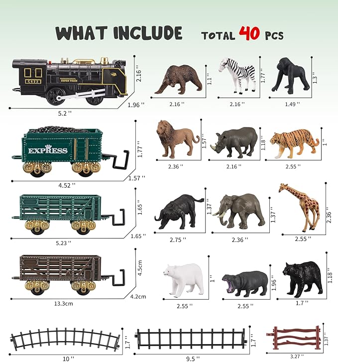 - SAFE, DURABLE & HIGH-QUALITY MATERIALS - Crafted with non-toxic, child-safe materials, this safari animal train set ensures hours of worry-free play. The hand-painted animal figures are made with attention to detail, while the sturdy train components are built to withstand active play. A reliable and safe choice for kids aged 3-5 years.