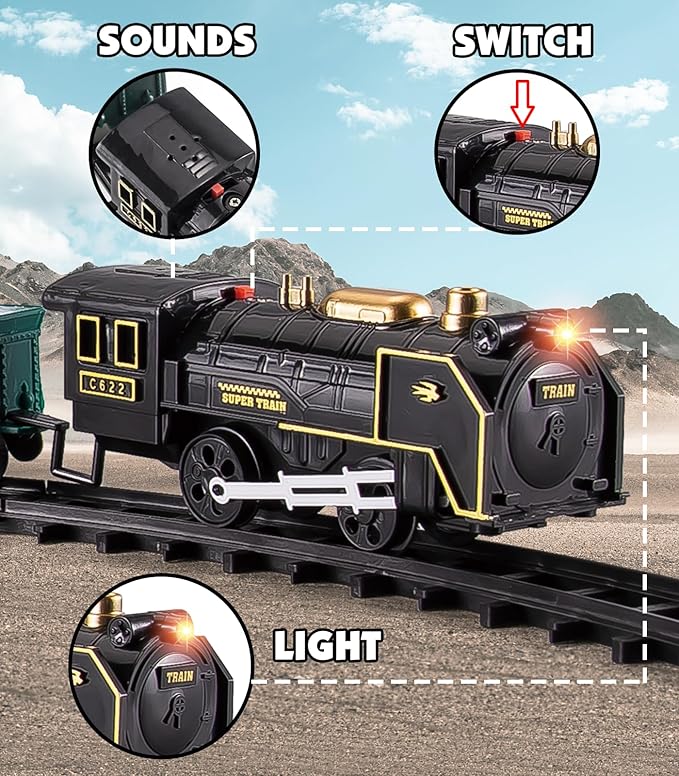 - REALISTIC FEATURES WITH LIGHTS & SOUNDS - This electric train set is designed to captivate children with its realistic LED lights and authentic train sounds. The interactive features enhance the imaginative play experience, making it a perfect toy for toddlers and kids who love trains and animals alike.