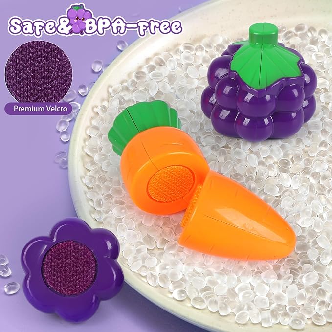 - ๐๐ฎ๐ญ๐ญ๐ข๐ง๐ ๐๐ฅ๐๐ฒ ๐ ๐จ๐จ๐& ๐๐ฎ๐ญ๐ ๐๐ข๐ณ๐ณ๐ ๐๐จ๐ฒ- Our toy food set features exquisite details and craftsmanship perfectly restore food details. the fruits and veggies can be sliced, the peas and banana can be peeled, and the eggs can be shelled and so much fun. A complete unique pizza can be cut into 6pcs for a more realistic kitchen game experience. All play food are made of safe, non-toxic, and BPA-free ABS tools for safely play
