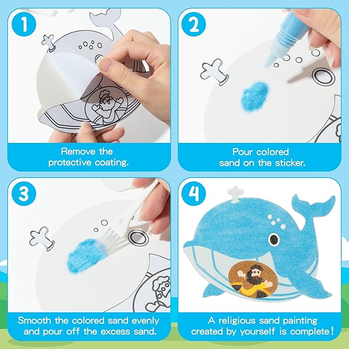 - Package Include: You will receive 24 pieces religious sand art crafts(6 different designs of 4 each), 24 bottles colored sand pens and 2 small plastic brushes