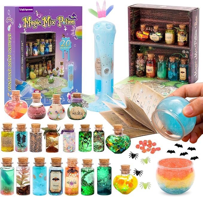 LiyLiyanna Magic Mystic Potion Kits for Kids, Mix 20 Magic Wizard Potion Bottles Birthday Decorations, Mystic Potion Craft Kits, Magic Kits Gifts for Girls and Boys Age 6 7 8 9 10+