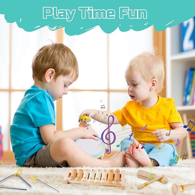 - 【Great First Musical Toy Gift for Kids】: That's a baby's first percussion instrument as you can see. toddler musical instruments exploring and creating beautiful melodies that foster a lifelong love of music, they serve as perfect preschool toys that not only entertain but also educate. It is an ideal gift choice for Christmas, Birthday, holidays, or baby showers.
