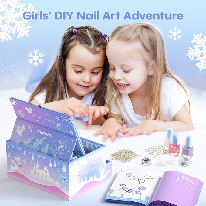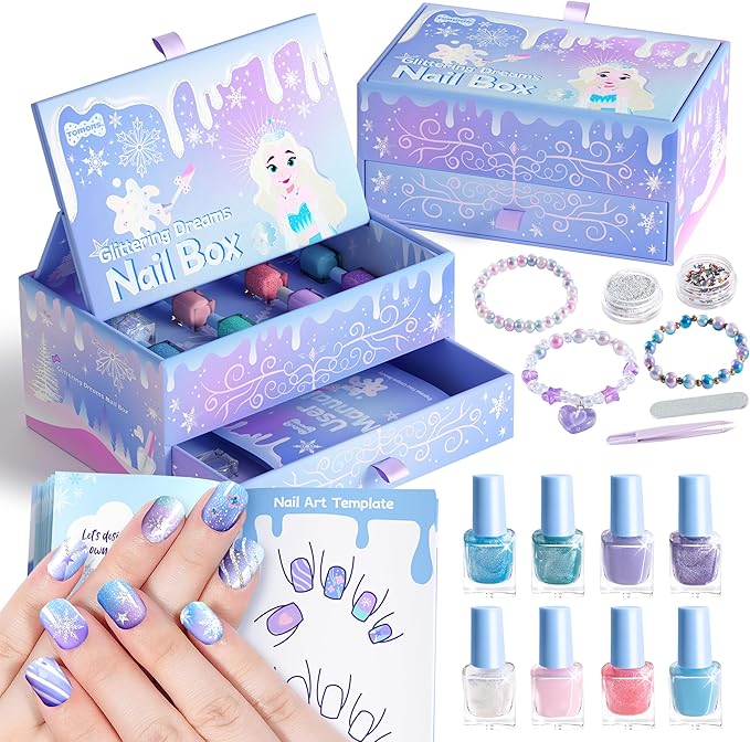 Tomons Kids Nail Polish Set for Girls, Non Toxic Nail Polish Art Kit for Kids Ages 7-12, Frozen Toys Gifts for 8 9 10 11 12 Year Old Girl, Bracelets, Glitter, Sequins, Stickers - 8 Colors