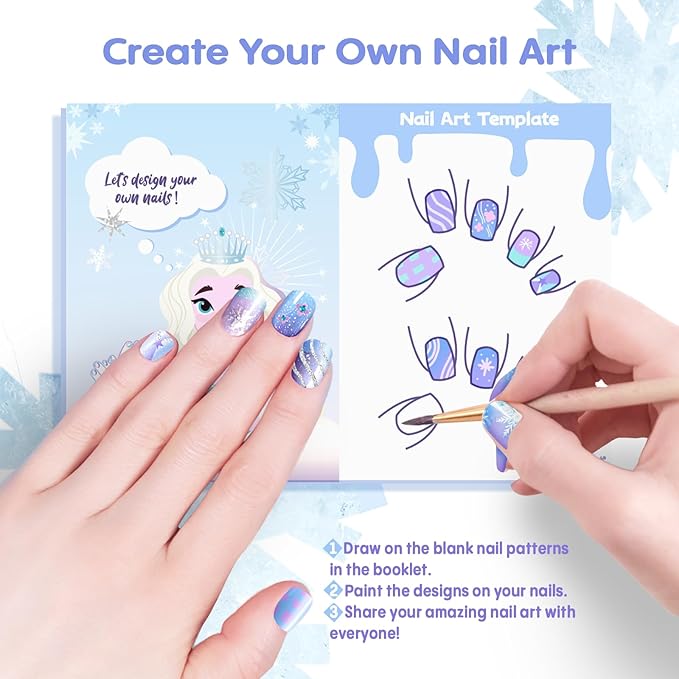 - Unleash Creativity: The kid's nail polish set comes with a user manual with a blank template for nail art design. Your little girl can design the nails she wants on the manual and then bring those creations to life on the nails