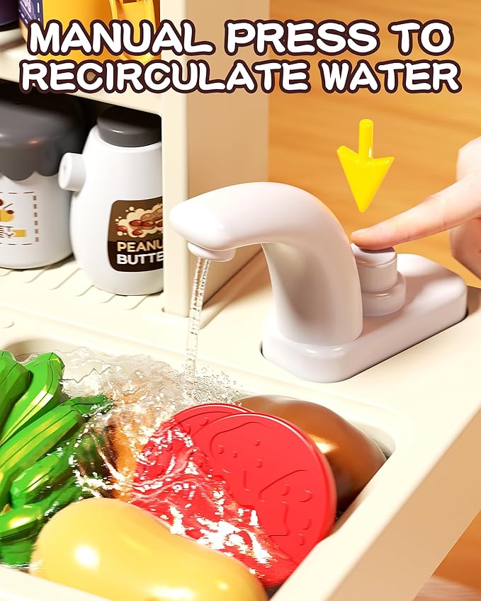 - [Interactive Learning and Sustainability] Teach kids about water conservation and sustainability with the sink's water circulation system. Let them clean their play foods, plates, and utensils while having fun and enhancing environmental awareness.