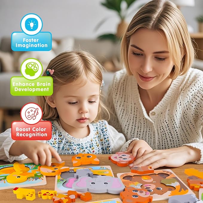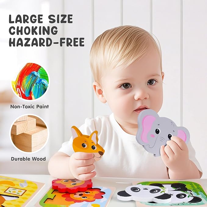 - PRIORITIZING SAFETY WITH PREMIUM MATERIALS: Ensuring safety and quality is our foremost concern. This puzzle set for kids is made from premium wood and coated with non-toxic paint, offering a secure and long-lasting learning experience. Perfect for boys and girls aged 1-3, it combines safety with enjoyable learning.