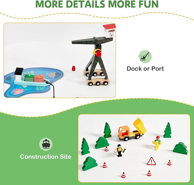 - Safe & Durable for Kids, Parent-Approved Quality: Crafted from high-quality, eco-friendly wood with non-toxic paint, this train set meets ASTM F963 and CPSIA safety standards. Built to withstand daily play, it's a durable and safe choice that parents can trust and kids will love!