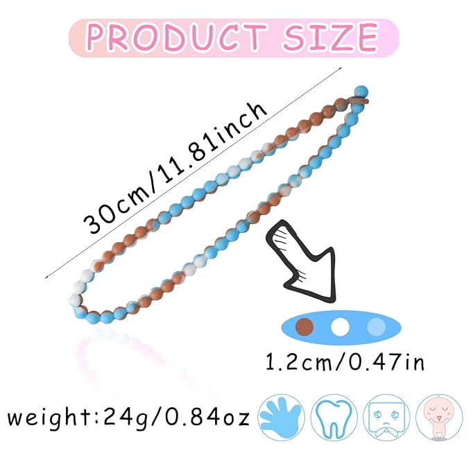 - 【Adjustable Length】:The length of the chew necklace can be adjusted according to your needs. It can be worn as a necklace or bracelet or hung on a bag or stroller. It can adapt to any scene and bring convenience to your life.