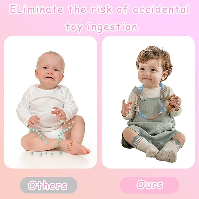 - 【100% Food Grade Silicone】:Our chew necklace are non-toxic, odorless, eco-friendly and flexible, free from harmful chemicals such as BPA, phthalates and lead, ensuring your baby will not feel discomfort when chewing, relieving your baby's gum pain.