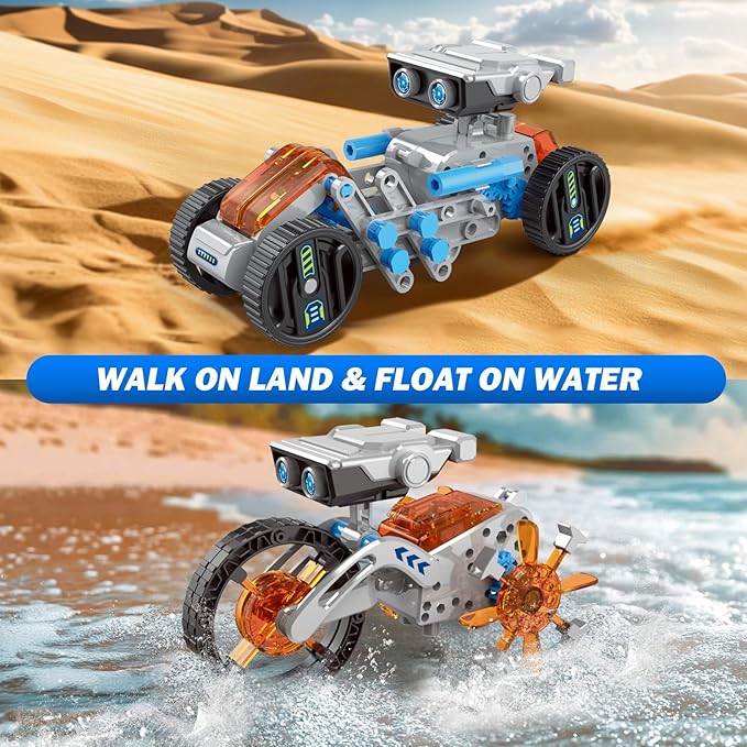 - 12 Different Robots to Build: The robot kit contains 202 parts. The main material of the toy is made of ABS material, which is long-lasting and suitable for children. Kids can disassemble and reassemble it according to the steps in the user manual to create 12 different shapes of robots, which can walk on land or sail on water.