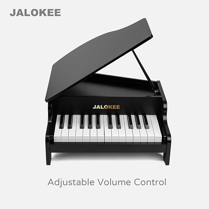 - 【25 KEYS DIGITAL PIANO】This JALOKEE piano is a miniature upright wooden piano that features 25 keys and 2 full octaves and offers an ideal introduction to music and help children transition to a full-size piano as they grow in age and experience. The sounds are made electronically with precision to eliminate the need for hand-tuning.