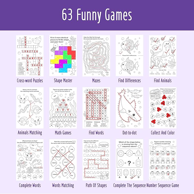 - Mini Games Included: The fun doesn't stop with coloring! Our coloring books include various exciting mini-games, including mazes, spot differences, cross-word puzzle, dot-to-dot and so on. It offers a delightful break from coloring and help to develop essential cognitive skills like problem-solving and visual perception.