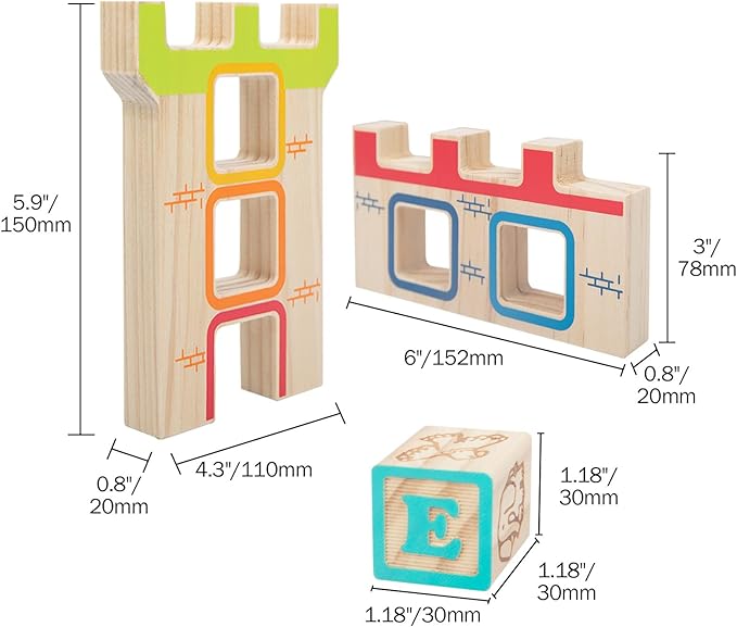 - Enhanced Play Experience: Unlike traditional wooden blocks sets, our set includes 29 unique pattern with animals/fruit/ food designs and 3 beloved castles, offering a more immersive play experience and providing hours of fun.