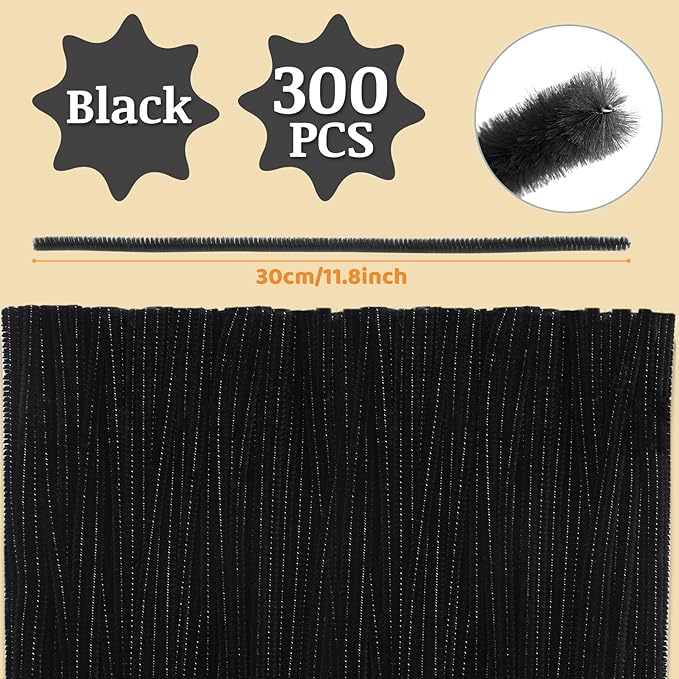 - Material: These black chenille stems are made of metal wire and black fiber, which can be bent and wound in any shape. They are soft and comfortable to touch and not easy to break