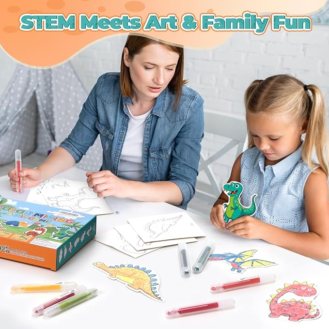 Educational Science Kits STEM Toys for Kids Age 5-7 Color Science Activity DIY Puzzle Dinosaur Painting Crafts for Boys Girls Ages 5,6,7,8,9,10 Years Color Mixing Game Christmas Bday Gift (Dinosaur)