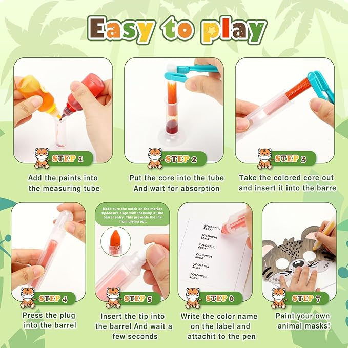 - This STEAM toy for kids includes six animal-themed masks and six elastic straps. These cute animal masks are made of quality paper and are just the right size for children aged 7-12. For boys and girls who love animal patterns, crafting personalized colors and using them to fill in the masks is sure to be fun and exciting!
