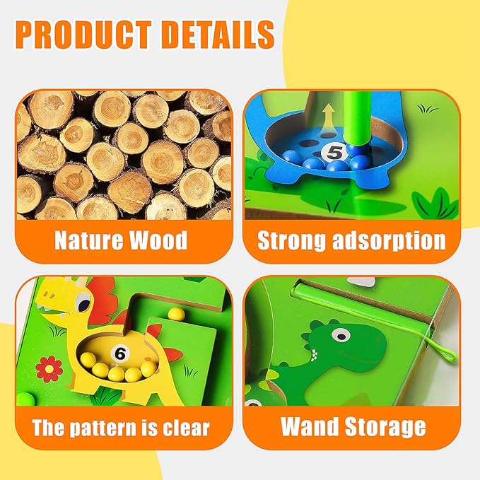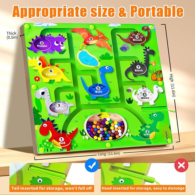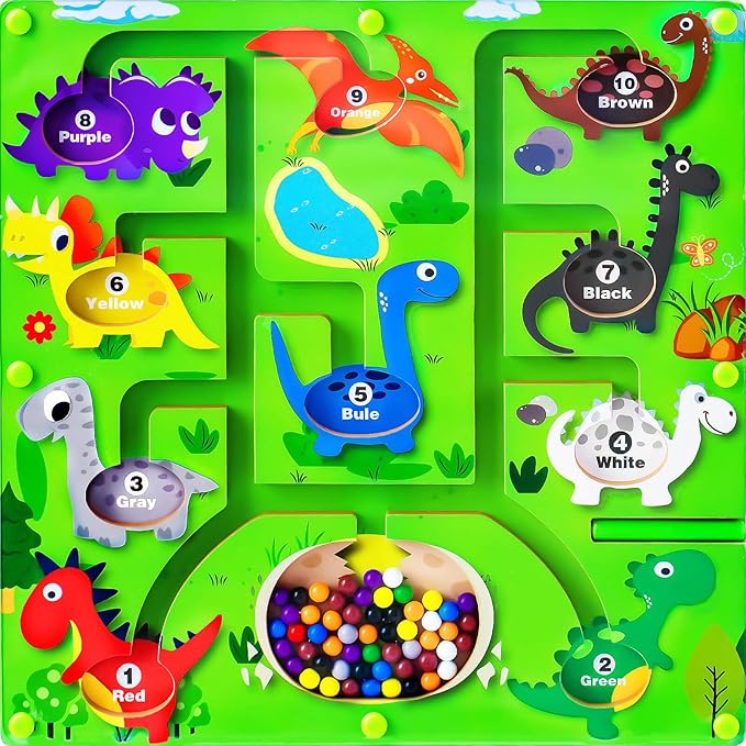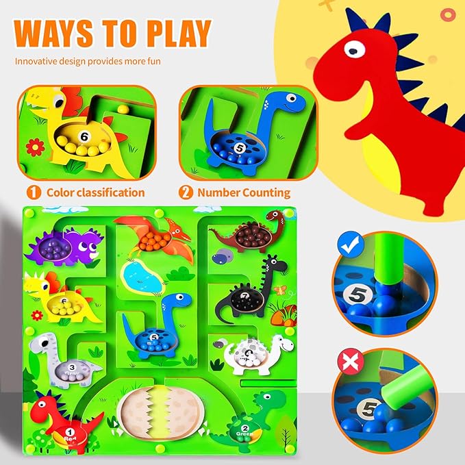 - Magnetic Color and Number Maze - This magnetic maze features 55 magnetic balls in 10 different colors to help children recognize colors and learn numbers. Children can use the magnetic rods to attract the corresponding color and number of magnet balls to the corresponding dinosaurs. This will keep them quiet and focused, enjoy color sorting and counting, and spark an interest in learning math.