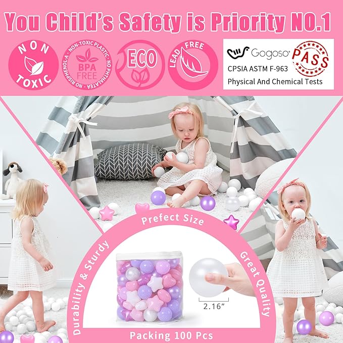 - Material: Our Gogoso ball pits balls are designed with safety-fun in mind. Made from non-toxic materials for babies, toddlers, and children.