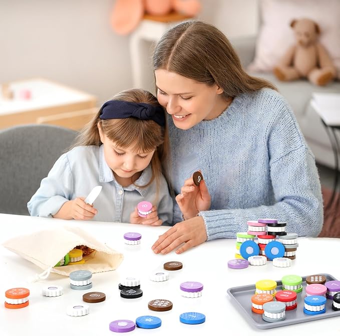 - Number Counting and Matching Toys: Each cookie is painted with numbers and a corresponding number of patterns, helping kids to learn number concepts, and master primary numbers for early education when playing and interacting with parents.