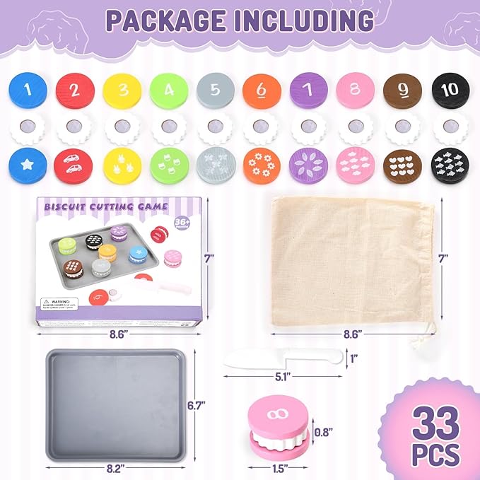 - Safe Construction: Our cookie toys are made of sturdy wood with smooth edges and safe paint. Suitable for small hands.