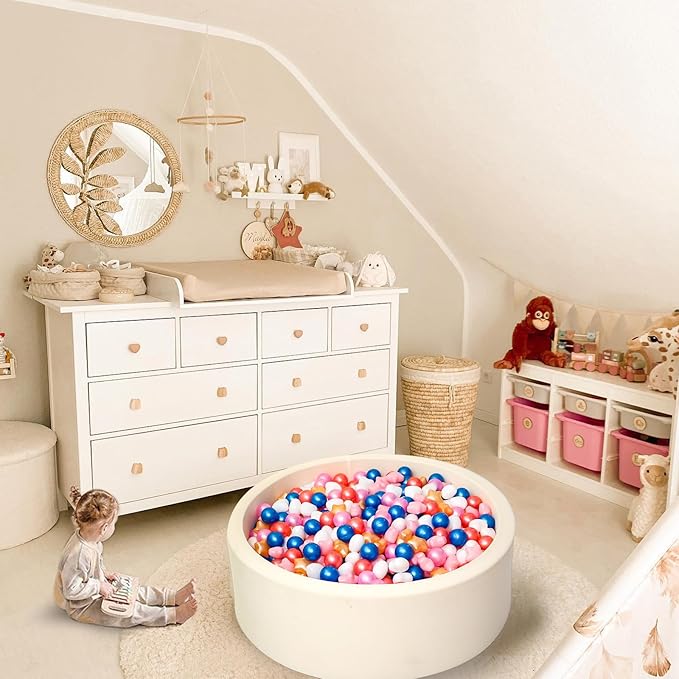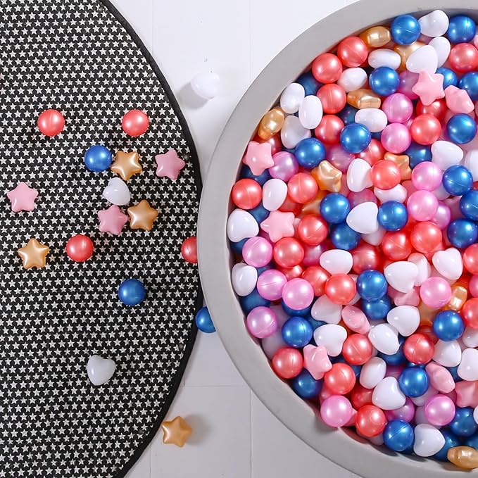 - Unleash Creativity: Foster imagination and cognitive development with our enchanting ball pits balls. With their eye-catching colors and star-hearts shaped design, kids can engage in color recognition, counting, and imaginative play, opening the door to endless creative possibilities. Make playtime truly magical!