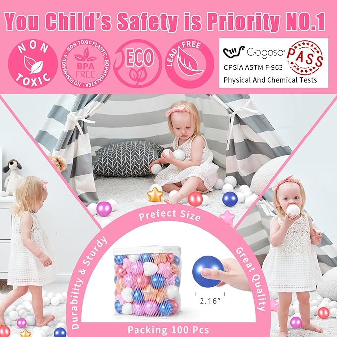- Material: Our Gogoso ball pits balls are designed with safety-fun in mind. Made from non-toxic materials for babies, toddlers, and children.