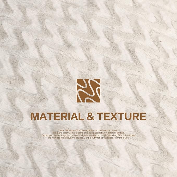 5ft Bean Bag Chairs for Adults Large Beanbag Chair with Chevron Plush Fur Cover Big Bean Bag Chair for Living Room Bedroom Dorm Office - White (50” x 50” x 24”)