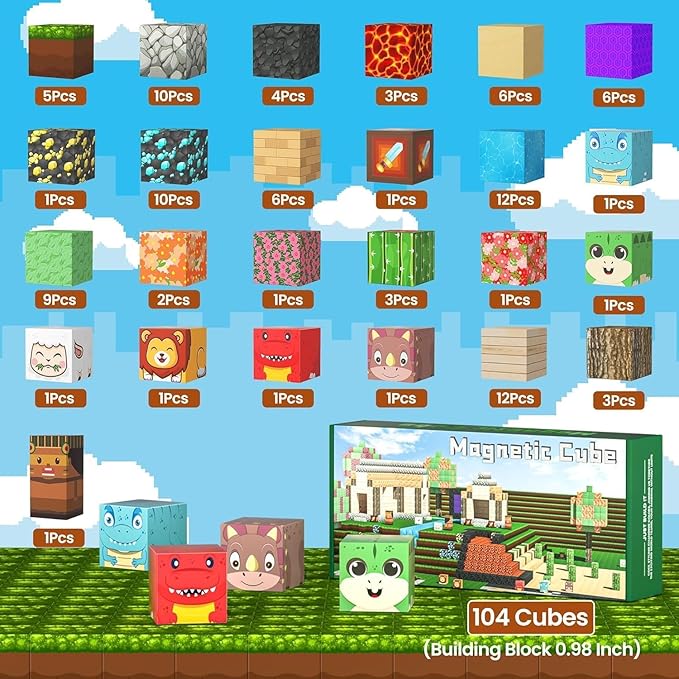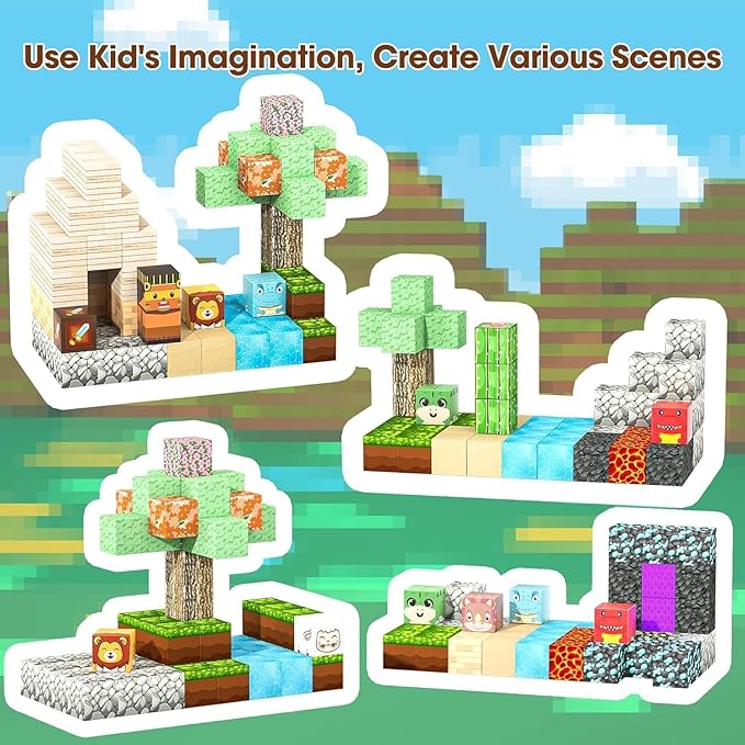 - 【Endless Creativity & Learning】Unlock a world of creativity with our magnetic building sets! These magnetic cubes and tiles are perfect for building blocks enthusiasts, offering endless ways to create unique designs. They double as excellent STEM toys, fostering problem-solving skills, spatial awareness, and motor skills. A great addition to any collection, compatible with other magnet toys, and perfect for mine world-inspired creations.