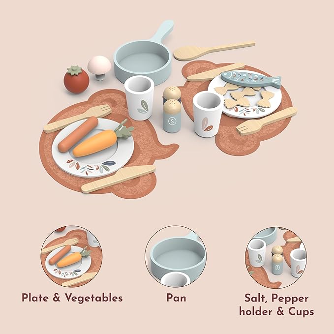 - Complete Play Experience: This 19-piece dining set includes everything from pasta and fish to salt and pepper shakers, allowing your child to recreate their favorite meals and enjoy a full cooking and dining experience.