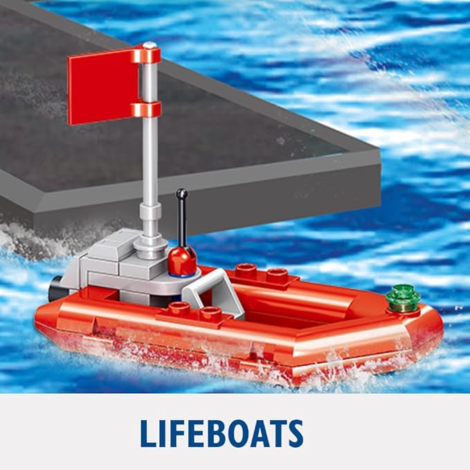 - 800-Piece Adventure: Dive into an ocean of creativity with our 800-piece Police Station set, featuring a detailed police station center, ship, nimble lifeboat, and a soaring helicopter for endless storytelling fun!